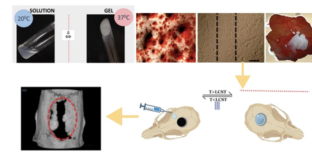 Bone defects from trauma, tumours, or diseases need biocompatible scaffolds for regeneration. Existing grafts have limitations, highlighting the need for an injectable, thermoresponsive, and biodegradable scaffold that supports bone growth, angiogenesis, and innervation.